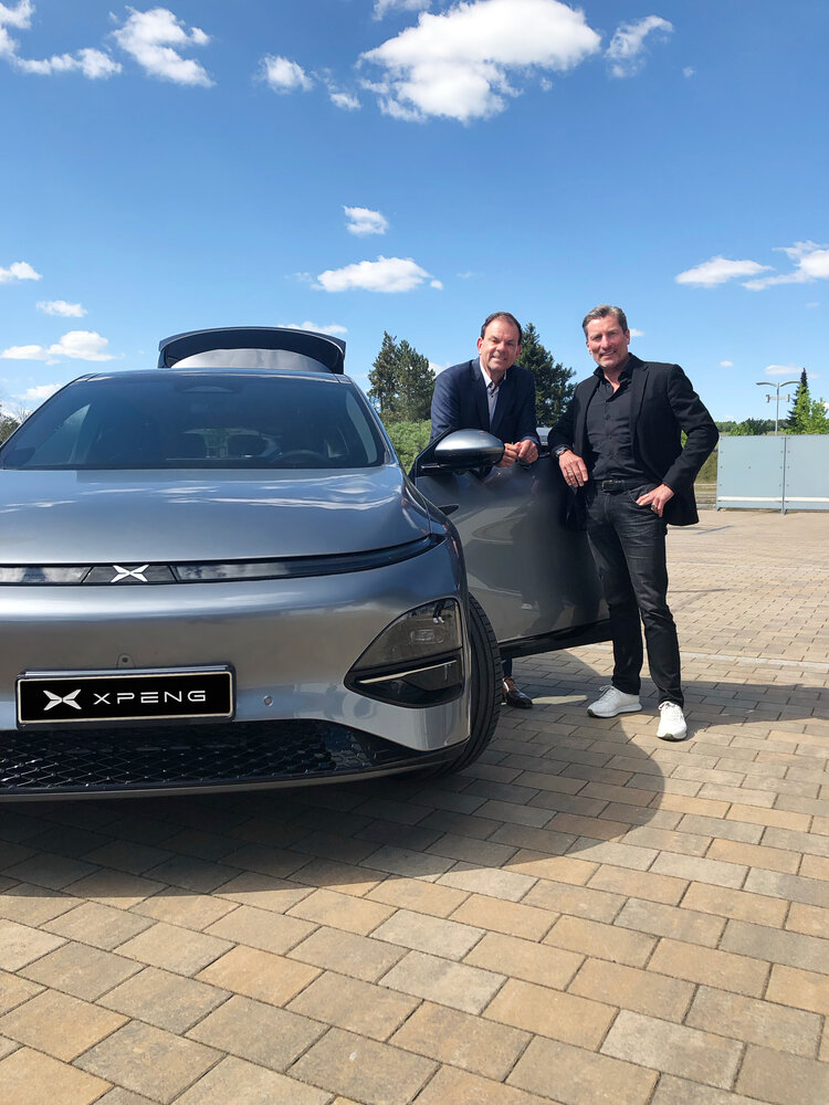 XPENG und e-mobilio sind Partner: Markus Schrick, Managing Director XPENG Region Central Europe (links) und Ralph Missy, Co-Founder von e-mobilio
